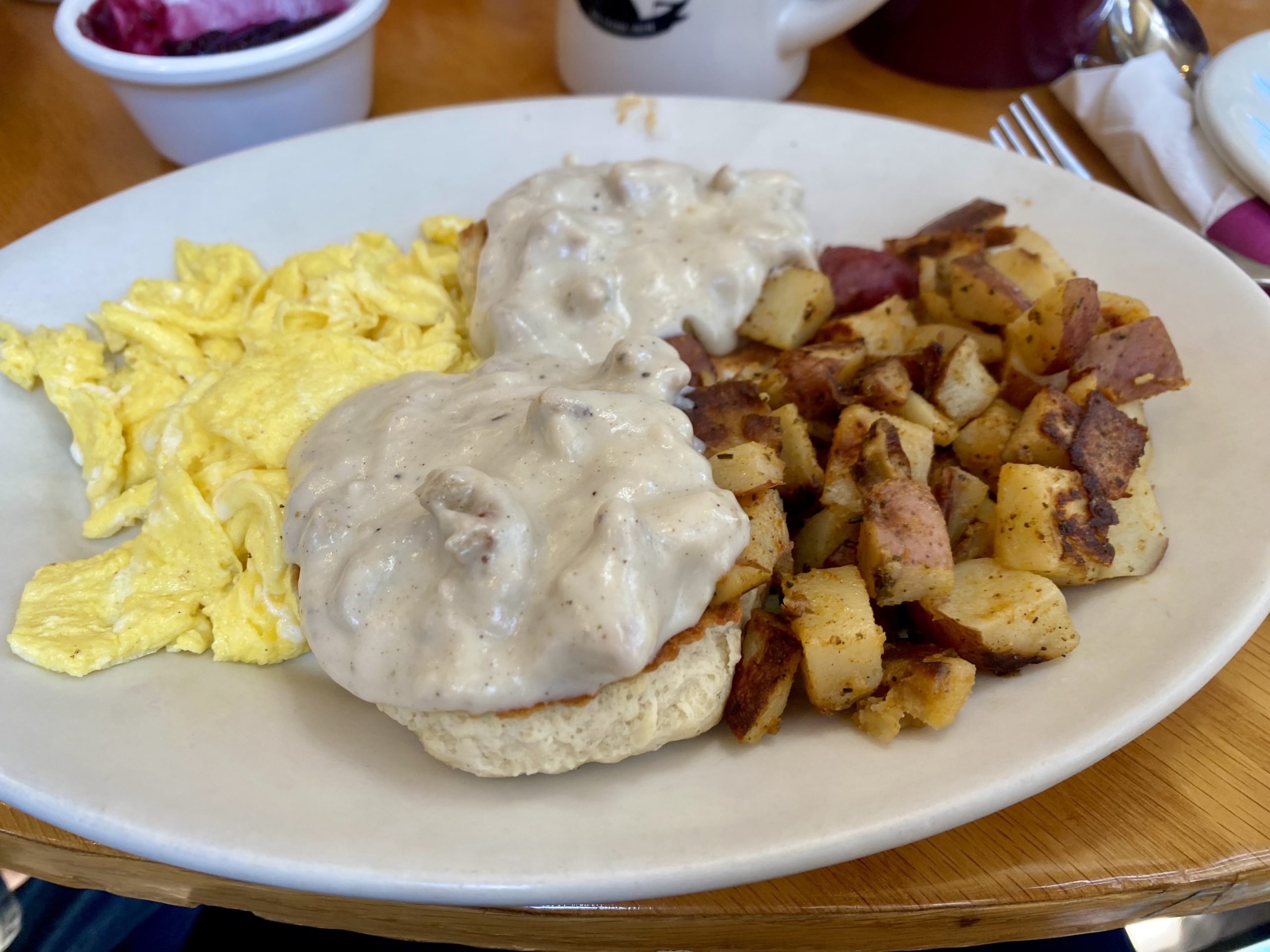Rather than returning straight home to Nashville, my first week back was spent in the lovely Southwest Harbor, Maine with my family. Clambering up the pine-blanketed mountains of Acadia and chasing fin whales on the Atlantic reminded me of everything I do love about my country; our natural landscapes are breathtaking. I also reveled in my large, savory breakfasts– eggs, sausage, hash browns, biscuits and gravy–a welcome return from the light and often sweet French breakfast. Indeed, the saying goes that the French survive on a café and a cigarette, though a viennoiserie (croissant, pain au chocolat, etc) or jam on toast is sometimes included.